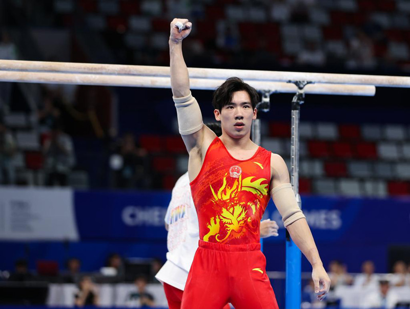 新華社成都8月2日電(記者譚暢、朱青)成都大運會體操項目2日進入第二個比賽日,由張博恒、鄒敬園、蘇煒德、蘭星宇、侍聰組成的中國隊以262.594分獲得男子團體冠軍。