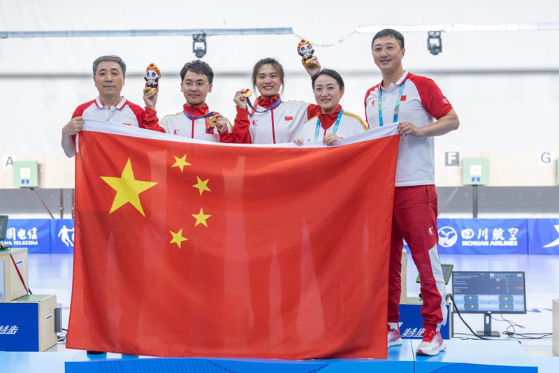 新華社成都8月2日電(記者黃耀漫、王春燕、田光雨)成都大運(yùn)會(huì)射擊項(xiàng)目2日收官。充滿懸念的賽制、實(shí)力相當(dāng)?shù)膶?duì)陣、中國隊(duì)的機(jī)會(huì),這些元素組合在一起,令當(dāng)天的兩場(chǎng)團(tuán)體決賽顯得格外刺激。最終中國隊(duì)選手頂住壓力,包攬10米氣步槍和10米氣手槍混合團(tuán)體兩枚金牌,為他們的成都大運(yùn)會(huì)之旅畫上圓滿的句號(hào)。