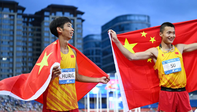 在當(dāng)天的田賽項(xiàng)目中,中國隊(duì)派出了華東師范大學(xué)的粟文、南京大學(xué)的王振等大學(xué)生名將。在男子三級跳遠(yuǎn)決賽中,粟文第二跳跳出了17米01,一舉確定領(lǐng)先優(yōu)勢并保持到最后。他賽后說:“雖然預(yù)賽和決賽最佳成績都超過了17米,但仍沒有達(dá)到我的最好水平。”