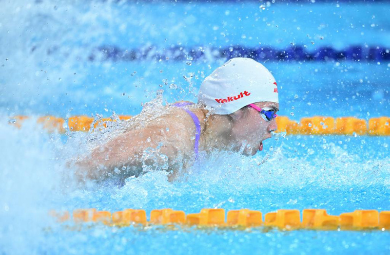 8月2日,張雨霏在決賽中。當日,在成都舉行的第31屆世界大學生夏季運動會女子50米蝶泳決賽中,中國選手張雨霏以25秒20的成績獲得冠軍。新華社記者 陳澤國 攝