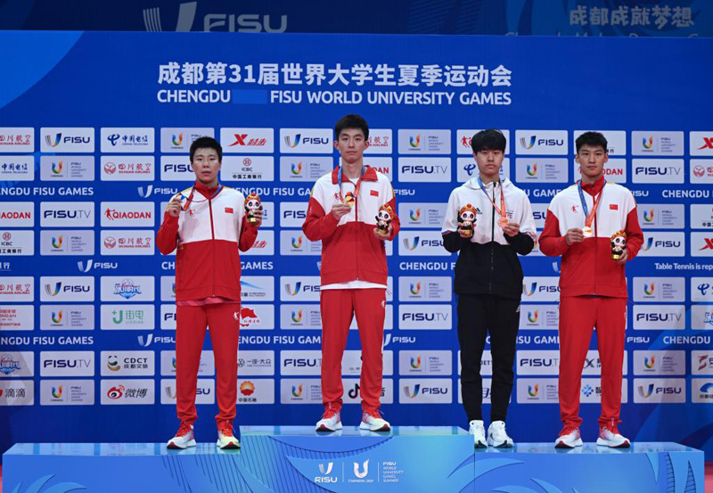 至此,本屆大運(yùn)會乒乓球項(xiàng)目在成都市高新體育中心體育館完賽,8天時間內(nèi)共產(chǎn)生7枚金牌。