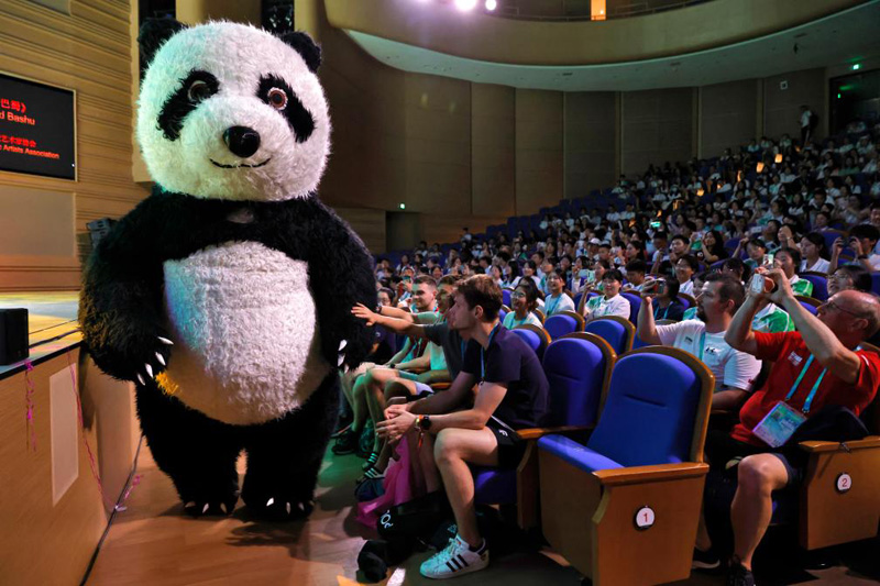 不同膚色、不同語(yǔ)言的大學(xué)生運(yùn)動(dòng)員們,在不同競(jìng)技項(xiàng)目的賽場(chǎng)上揮灑汗水,奮力拼搏,在賽場(chǎng)外卻幾乎擁有共同的喜好——大熊貓。一場(chǎng)黑白色的大熊貓“圈粉”旋風(fēng)在成都勁吹。