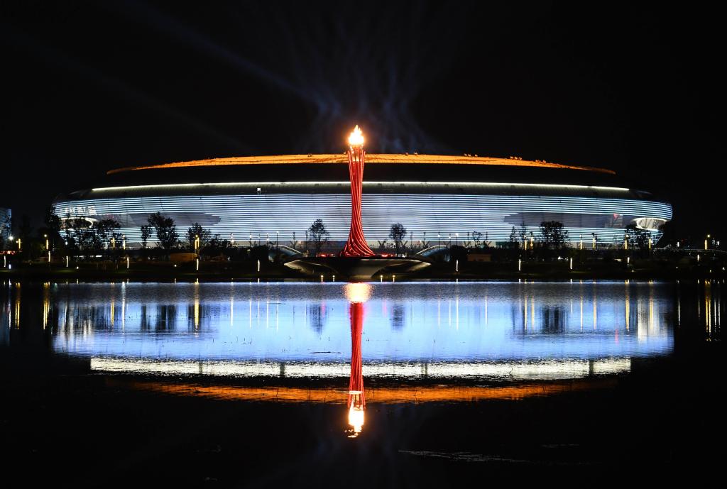 成都大運(yùn)會(huì)主火炬。新華社記者張端攝