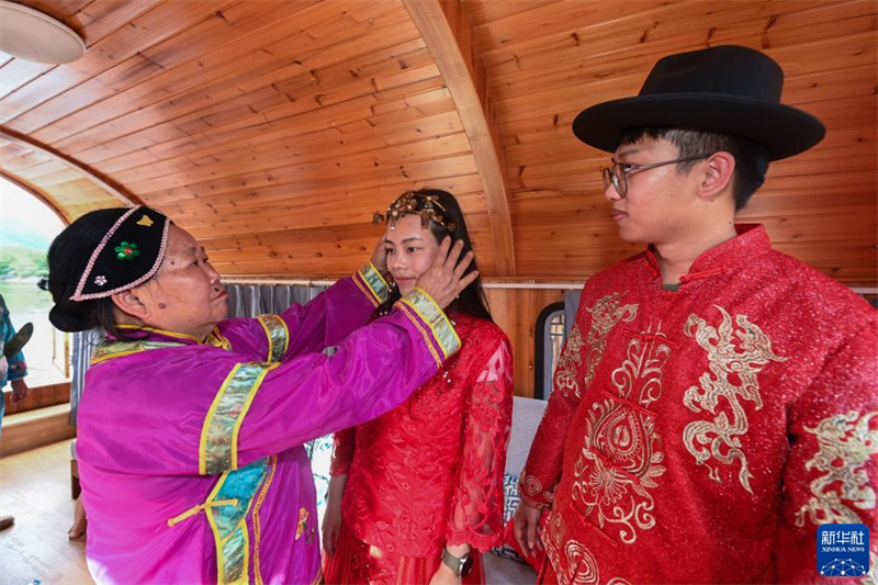 8月19日,游客在觀看三都鎮(zhèn)三都漁村水上婚禮傳統(tǒng)民俗表演?!?/span>