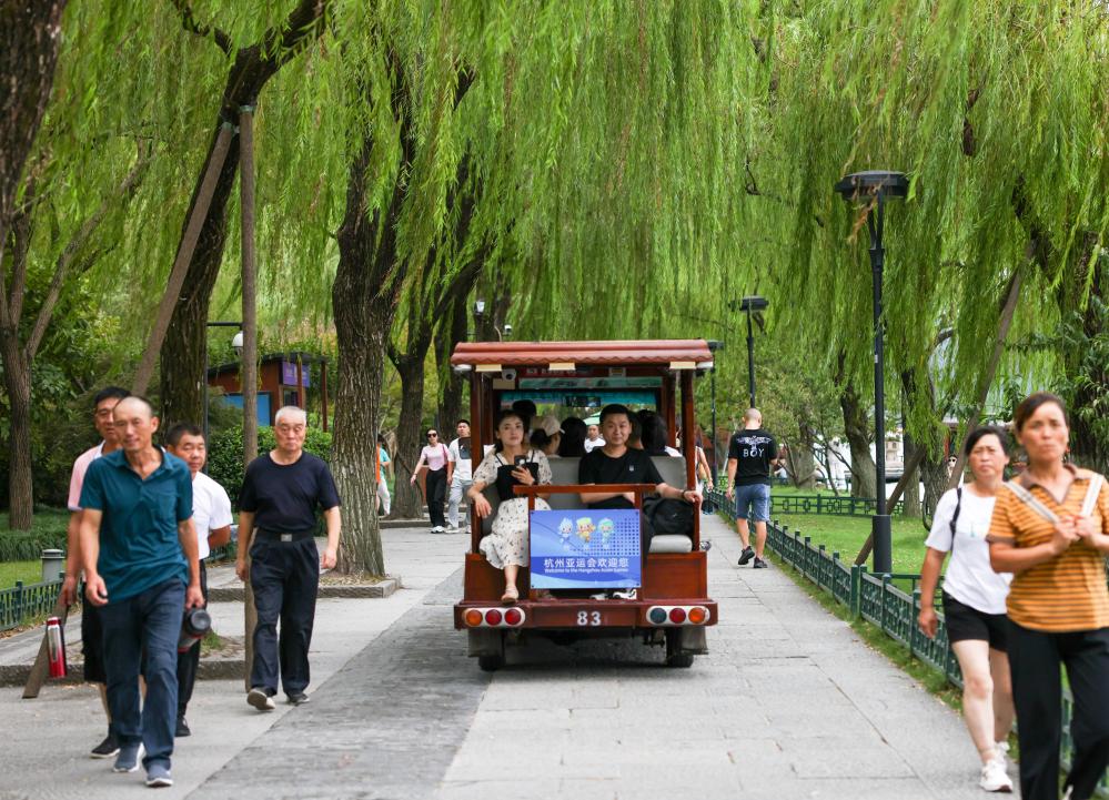 9月20日,游客乘坐杭州西湖景區(qū)觀光車游覽。新華社記者顏麟蘊(yùn) 攝