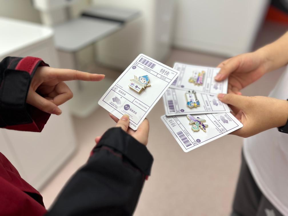 記者在亞運會主媒體中心里,看到不少人在一展臺前排隊領徽章,款式有坐著航空飛機的蓮蓮、騎馬的琮琮、化身快遞小哥的宸宸等?!斑@些徽章把亞運物流服務與亞運‘三小只’做了特別的結合?!眻A通速遞工作人員姜玲說,物流服務往往是人們看不見的服務,我們希望通過徽章展示出高效便捷的快遞物流以及中國速度。