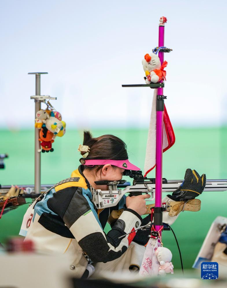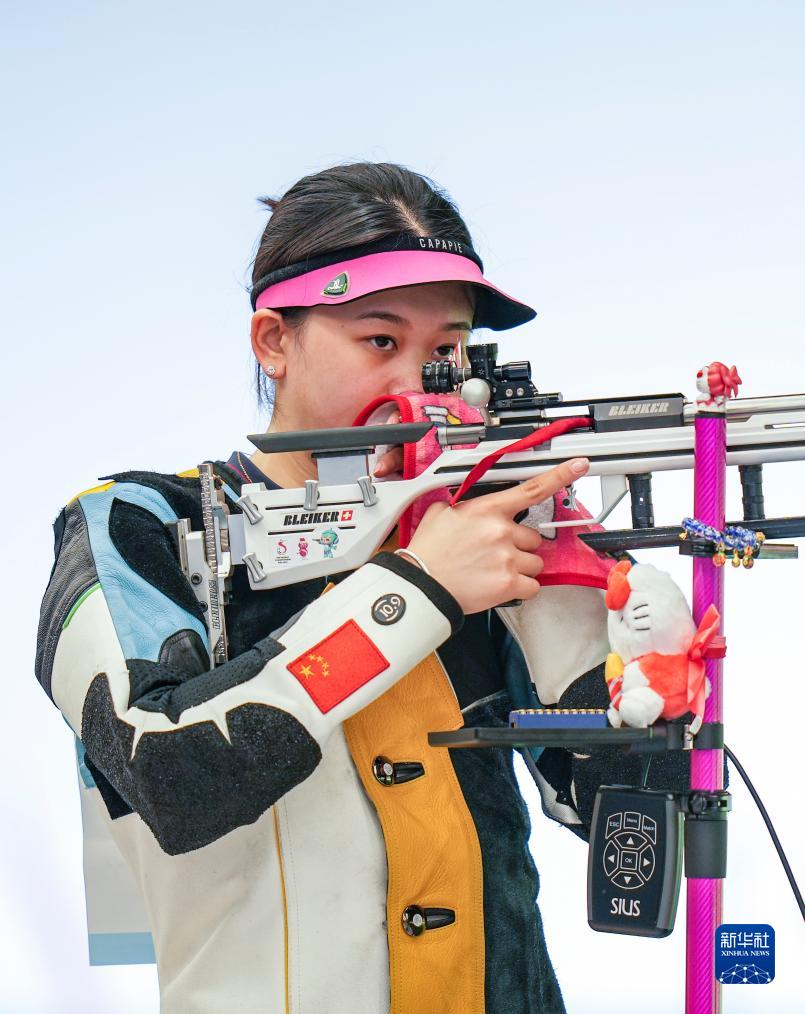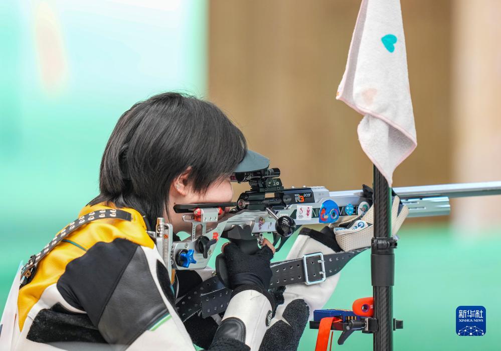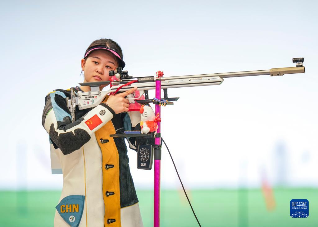 當日,在浙江省杭州市富陽區(qū)富陽銀湖體育中心舉行的杭州亞運會射擊女子50米步槍3種姿勢團體賽決賽中,中國隊以總分1773分的成績?nèi)〉媒鹋疲《汝牶晚n國隊分獲銀牌、銅牌。