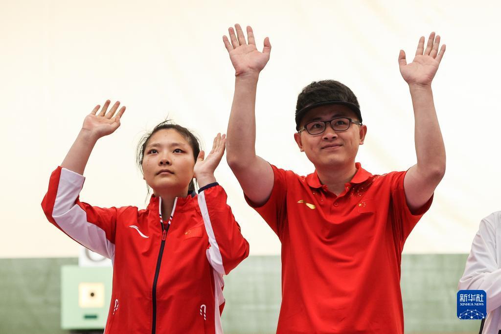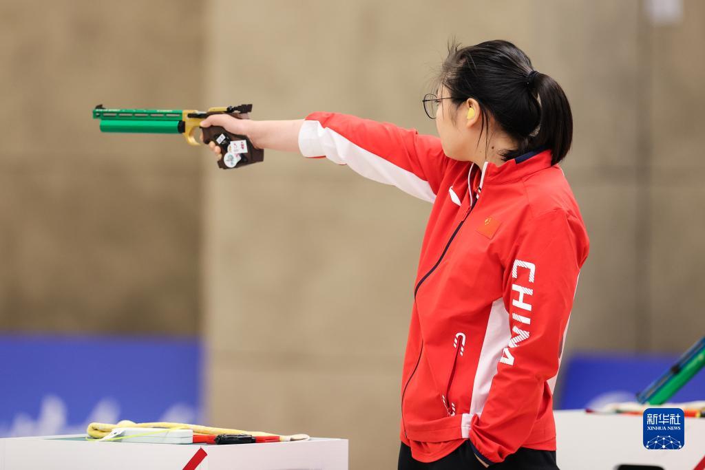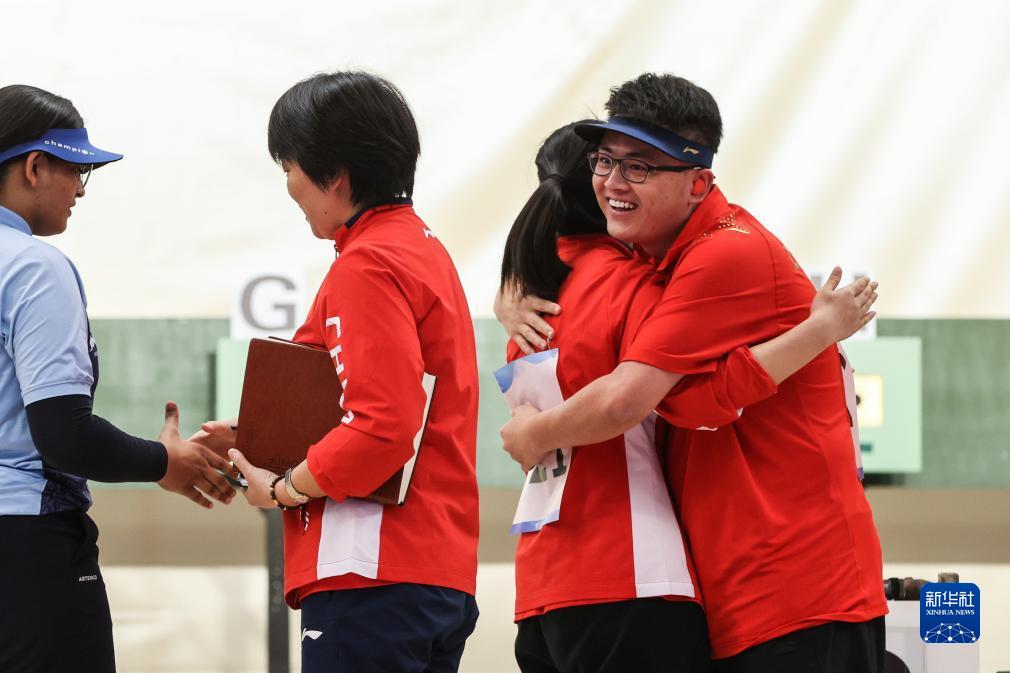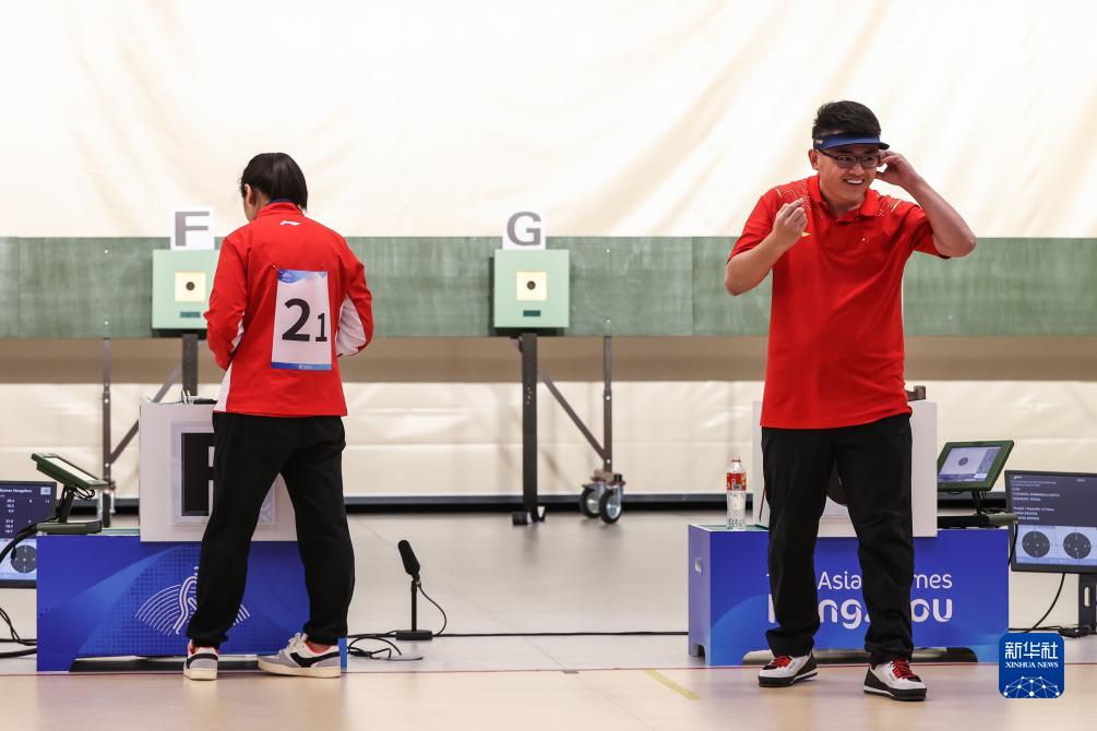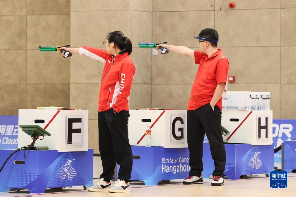 當(dāng)日,在杭州富陽銀湖體育中心舉行的杭州亞運(yùn)會(huì)射擊項(xiàng)目混合團(tuán)體10米氣手槍決賽中,中國組合張博文/姜冉馨以16比14戰(zhàn)勝印度組合薩拉布喬特·辛格/迪維婭·塔迪戈?duì)枴ぬK巴拉朱,奪得冠軍。