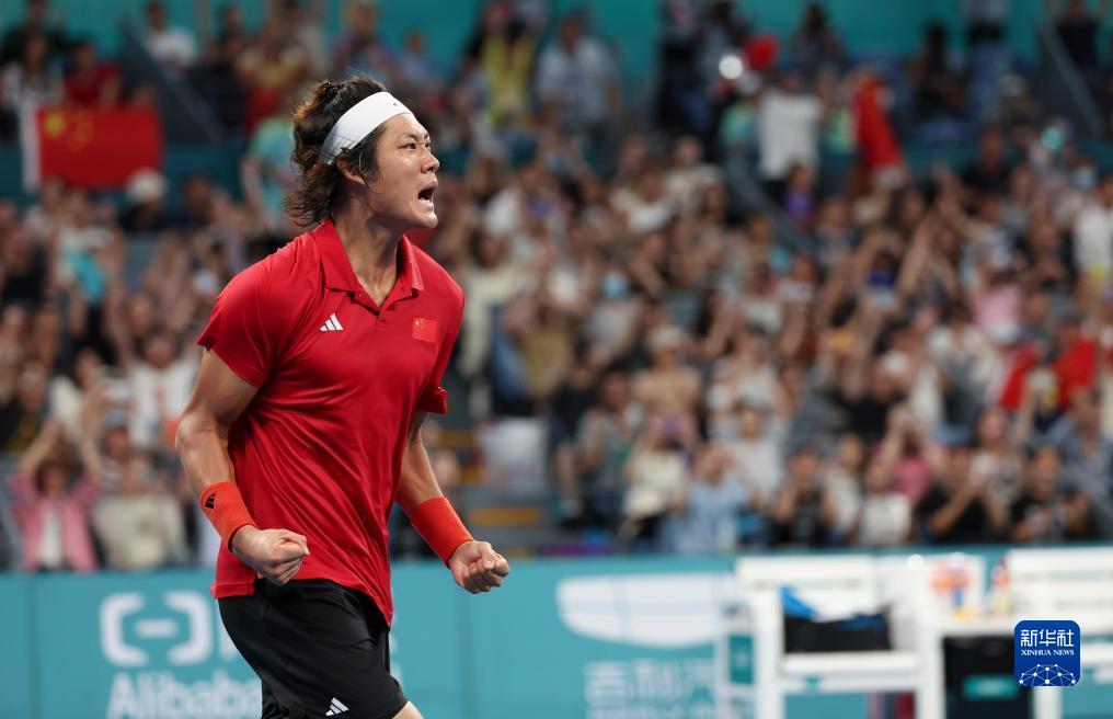 當(dāng)日,在浙江杭州奧體中心網(wǎng)球中心進(jìn)行的杭州亞運(yùn)會(huì)網(wǎng)球男子單打決賽中,中國(guó)選手張之臻以2比0戰(zhàn)勝日本選手綿貫陽(yáng)介,奪得冠軍。