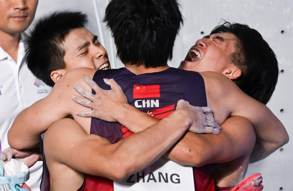 新華社浙江紹興10月4日電(記者王沁鷗、劉博、林光耀)在4日的杭州亞運(yùn)會(huì)攀巖比賽中,中國隊(duì)繼前一天遺憾錯(cuò)失個(gè)人項(xiàng)目金牌后,于接力項(xiàng)目創(chuàng)造歷史,在男、女團(tuán)體速度接力決賽中均力克衛(wèi)冕冠軍印度尼西亞隊(duì),包攬雙金。這也是中國隊(duì)首次在亞運(yùn)會(huì)賽場(chǎng)上獲得攀巖項(xiàng)目金牌。