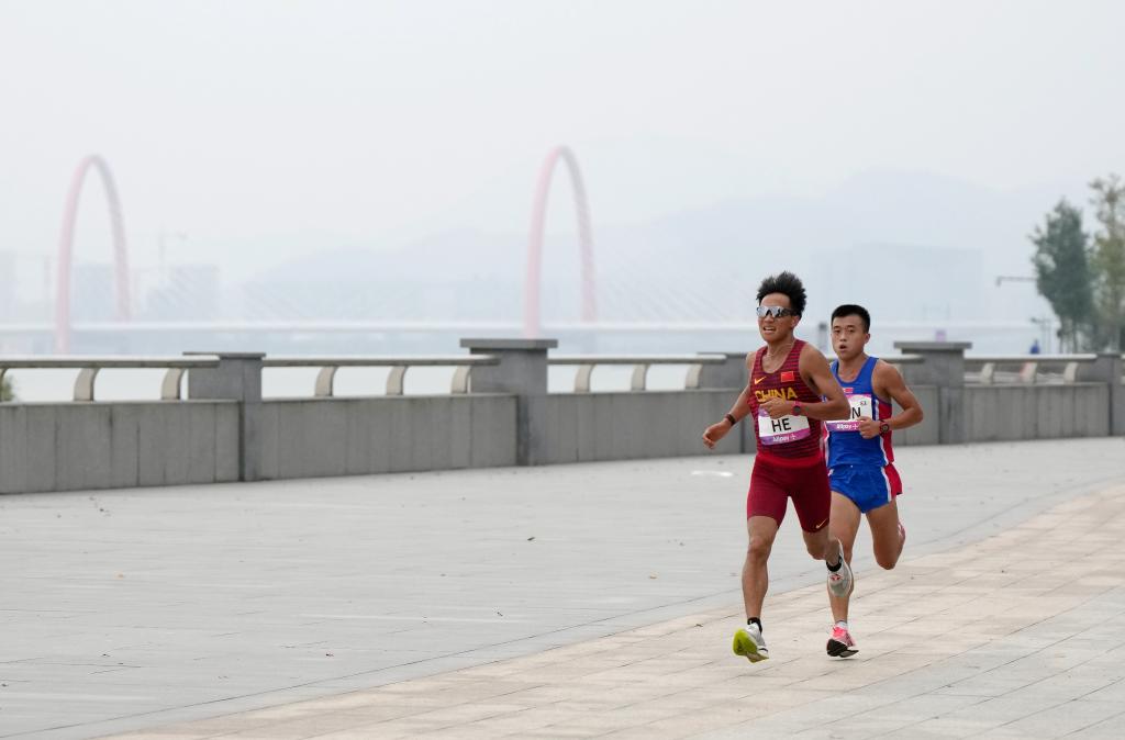 當(dāng)天上午7時,男子馬拉松比賽率先鳴槍。今年創(chuàng)造了全國紀(jì)錄的何杰攜手隊友楊紹輝出戰(zhàn),被寄予厚望。比賽30公里后,何杰、楊紹輝、朝鮮選手韓日龍等7人形成第一集團。38公里后,何杰和韓日龍甩開大部隊,展開了激烈競逐。到40公里時,何杰發(fā)力,開始獨自領(lǐng)跑。最終,他以2小時13分02秒的成績奪冠,韓日龍、楊紹輝分獲亞軍和季軍。