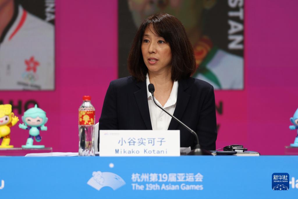 10月7日,亞奧理事會運動員委員會主席小谷實可子在新聞發(fā)布會上發(fā)言。