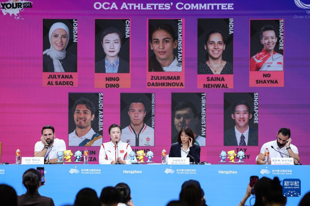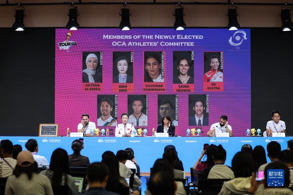 當(dāng)日,亞奧理事會運動員委員會選舉結(jié)果新聞發(fā)布會在杭州主媒體中心舉行。奧運冠軍、中國女子乒乓球名將丁寧當(dāng)選亞奧理事會運動員委員會委員。