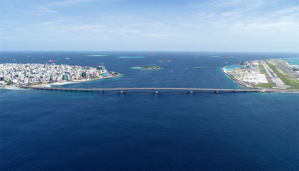 這是航拍的連接馬爾代夫首都馬累和機(jī)場(chǎng)島的中馬友誼大橋(2019年8月30日攝)。新華社發(fā)(王明亮攝)