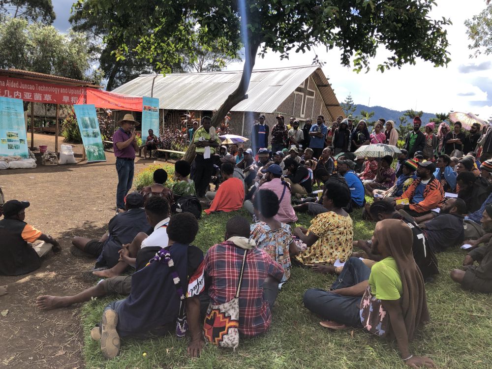 中國(guó)專家在巴布亞新幾內(nèi)亞?wèn)|高地省中國(guó)援助巴新菌草和旱稻技術(shù)項(xiàng)目第9期培訓(xùn)班上授課(2020年12月15日攝)。新華社發(fā)