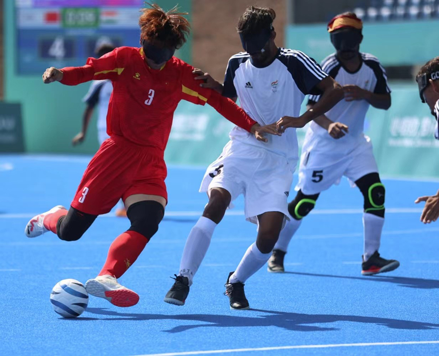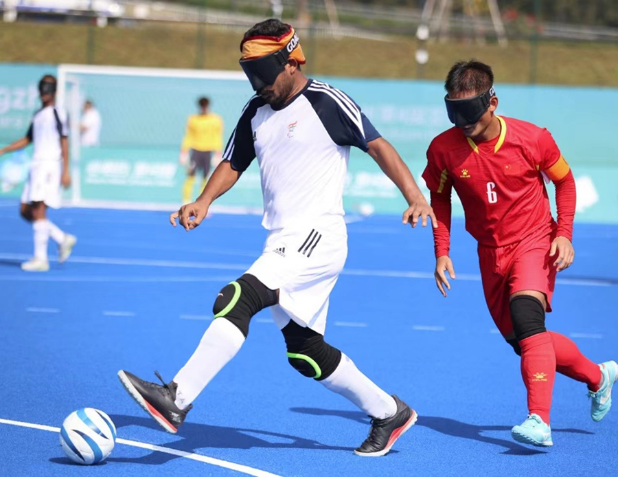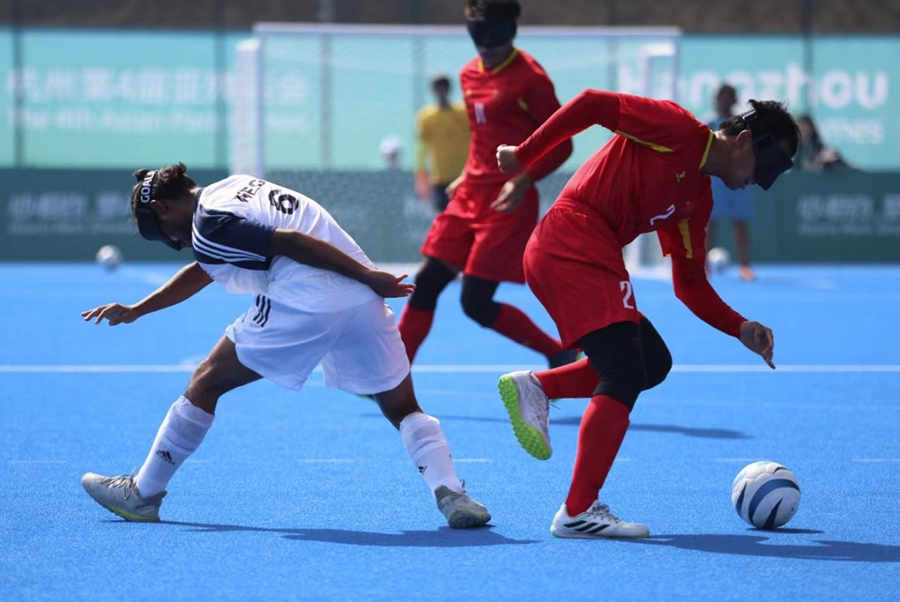 10月23日,杭州亞殘運(yùn)會(huì)盲人足球比賽開賽,首場比賽是中國盲人男子足球隊(duì)對陣印度隊(duì)。中國隊(duì)的綜合實(shí)力更勝一籌,發(fā)動(dòng)了多次頗具威脅的進(jìn)攻,最終以4:0戰(zhàn)勝對手。