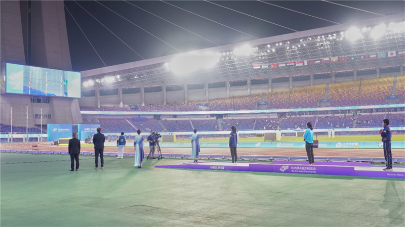 本次杭州亞殘運(yùn)會(huì)的田徑賽場(chǎng),6天時(shí)間里一共將產(chǎn)生153枚金牌(不包括并列情況),平均每天要頒獎(jiǎng)20余次。以10月25日為例,當(dāng)天要舉行30次頒獎(jiǎng)儀式,在如此頻繁的情況下,黃龍?bào)w育中心如何確保儀式過(guò)程萬(wàn)無(wú)一失呢?