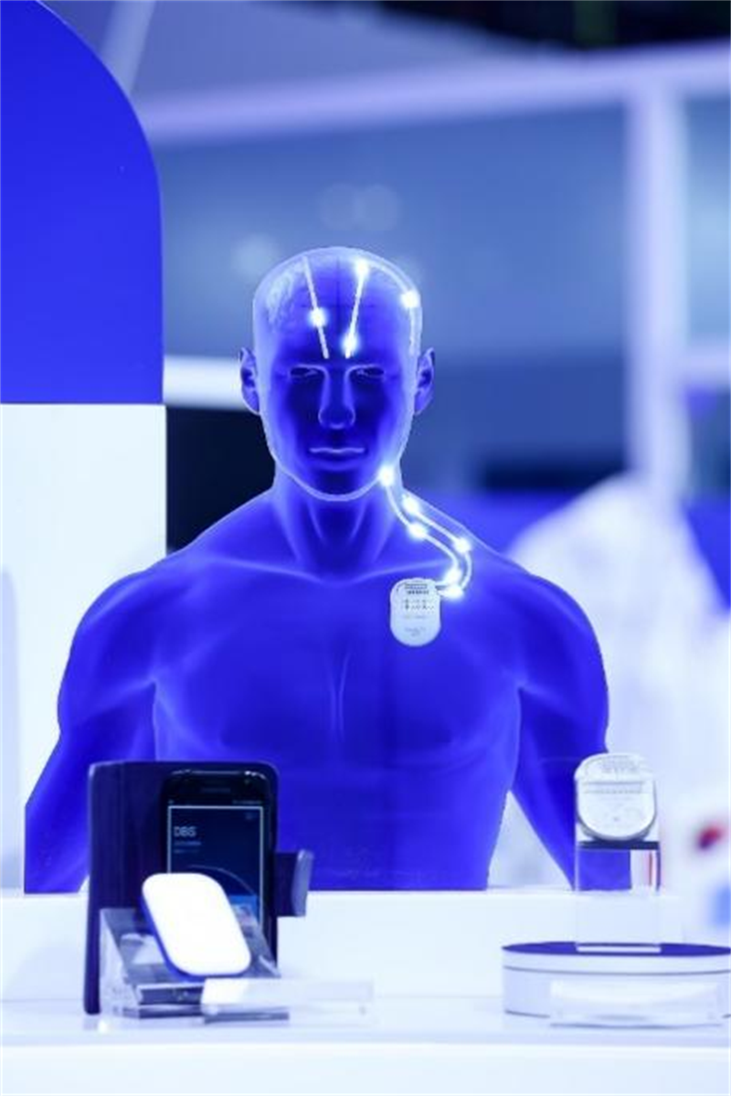 第四屆進(jìn)博會(huì)上的PerceptTM PC 植入式腦深部刺激系統(tǒng),目前已完成首批人腦植入手術(shù)。