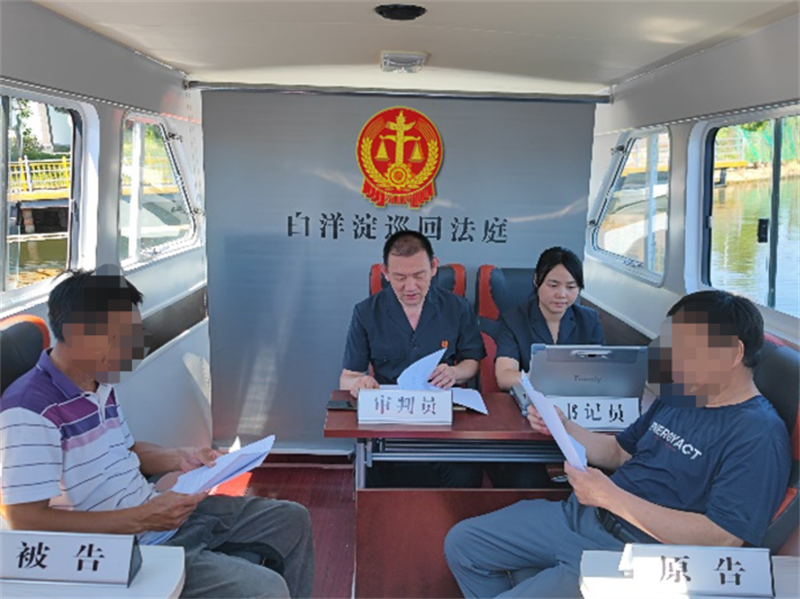 圖為白洋淀人民法庭巡回審判船——天平號(hào)。安新縣人民法院供圖