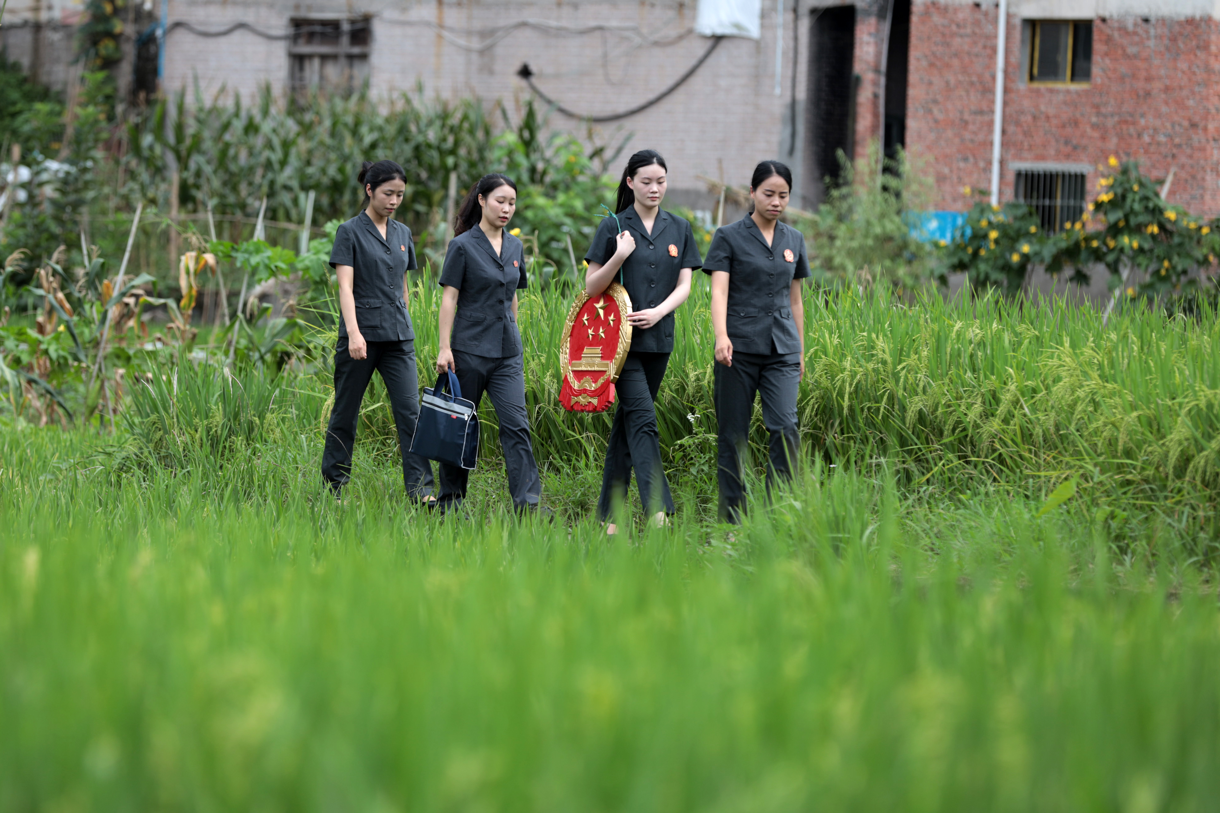 從2008年開始,忠縣法院翠屏法庭干警全部為女性,因此,翠屏法庭又被當?shù)乩习傩沼H切地稱為“女子法庭”。她們發(fā)揮女同志溫柔堅韌、熱情耐心的特性,通過柔性司法將矛盾化解在萌芽、化解在基層,讓老百姓切身感受到法律的溫度。