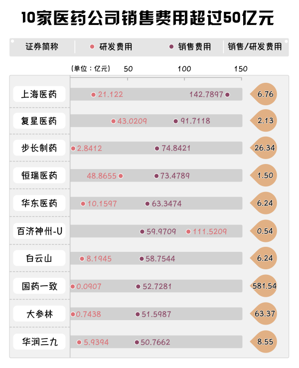 3.10家A股藥企銷(xiāo)售費(fèi)用超過(guò)50億元