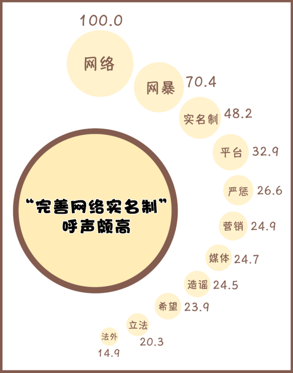網(wǎng)絡(luò)暴力實施者借助網(wǎng)絡(luò)的隱蔽性,披著“隱形的斗篷”躲在暗處,享受著施暴的快感。對此,網(wǎng)民也紛紛發(fā)表觀點。分析“網(wǎng)絡(luò)暴力”有關(guān)熱門帖文下的評論可以看出,“實名制”“平臺”“嚴懲”等詞語出現(xiàn)頻率較高。