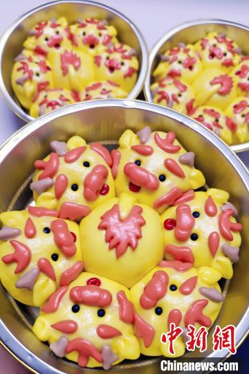 在我國(guó)北方地區(qū),大多有著“過(guò)大年,發(fā)面蒸花饃”的年俗,其中“發(fā)”,寓意新的一年發(fā)家發(fā)財(cái),“蒸”寓意來(lái)年日子蒸蒸日上。臨近春節(jié),河北省定州市民間手藝人蘇利榮和同事們也忙碌了起來(lái),憑借著專(zhuān)業(yè)的面點(diǎn)技術(shù),一塊塊柔軟的面團(tuán),在她們的手中變身為造型各異的創(chuàng)意花饃。為迎接龍年的到來(lái),她們專(zhuān)門(mén)設(shè)計(jì)蒸制了帶有“龍”元素的花饃,“龍鳳呈祥”“金龍送?!薄褒埬甏蠹薄螒B(tài)各異、喜慶吉祥的花饃傳遞著濃濃的年味兒。(文/李玉素 圖/白永民)