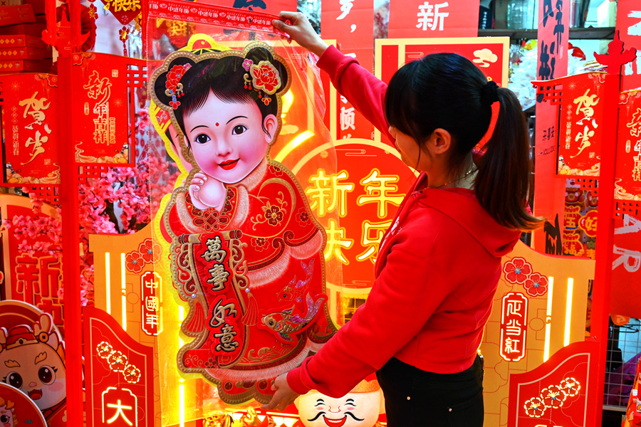 傳統(tǒng)“龍”形象的新年裝飾成為搶手貨。人民網(wǎng)記者 陳博攝