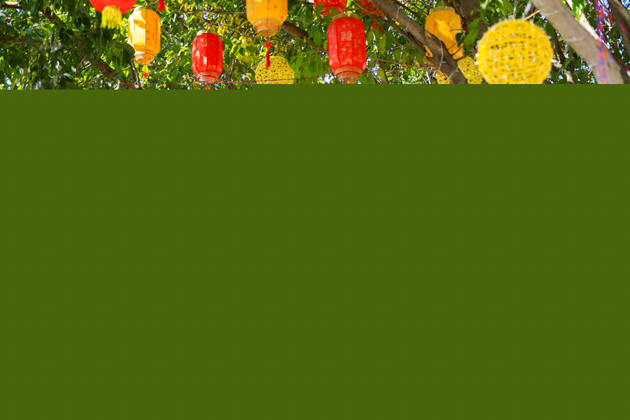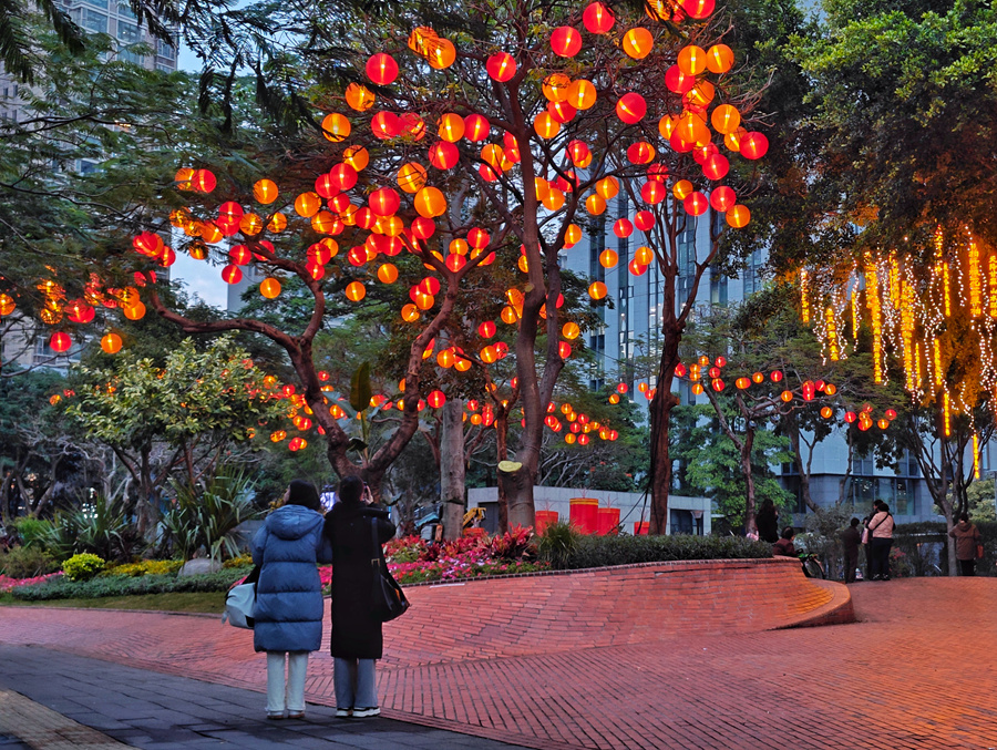 廈門思明美仁園內(nèi),大紅燈籠掛滿樹。胡康強攝