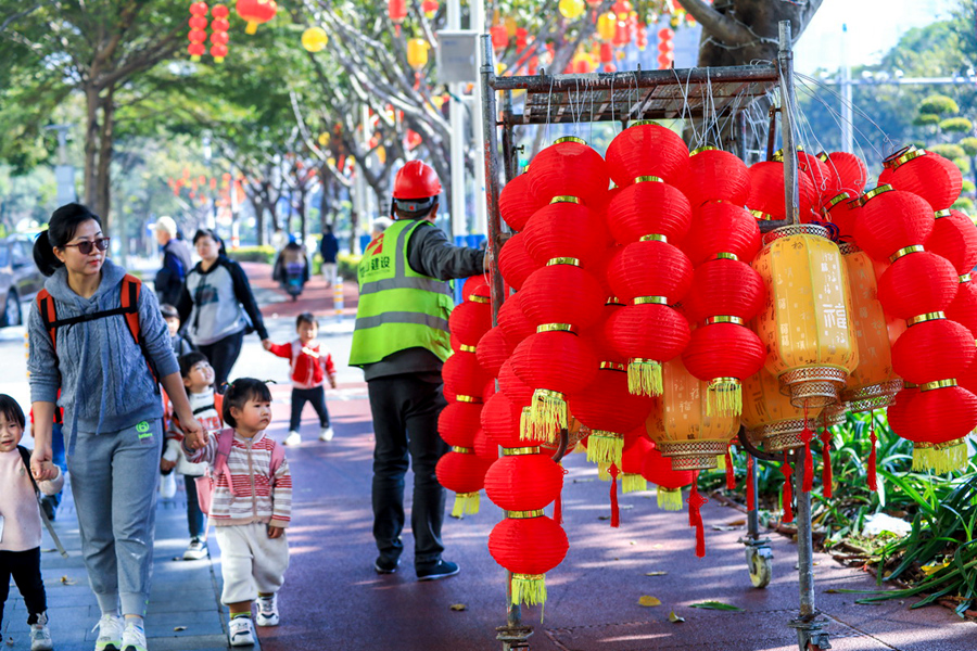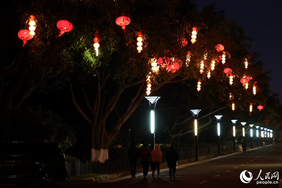 人民網(wǎng)廈門1月24日電 (記者陳博、張萌)近日,隨著農(nóng)歷新春佳節(jié)的臨近,廈門島內(nèi)外年味漸濃,在道路旁、公園中,一串串燈籠掛滿枝頭,一副副春聯(lián)為市井街頭抹上一筆靚麗的紅,處處洋溢著迎接新春的喜氣氛圍。