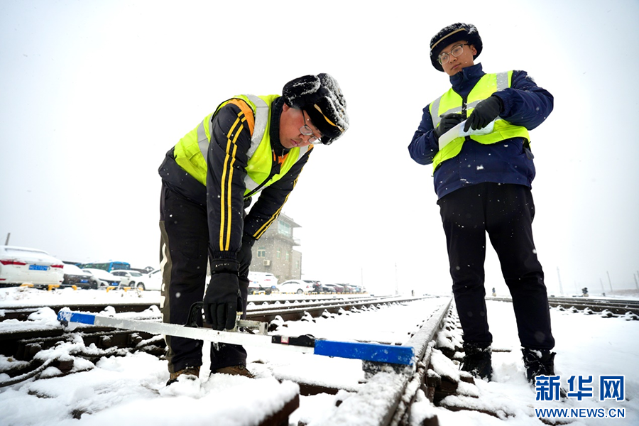 1月16日,在西安市臨潼區(qū)新豐鎮(zhèn)編組站,“鋼軌醫(yī)生”用道尺檢查線路幾何尺寸。新華網(wǎng)發(fā) 喬小虎 攝