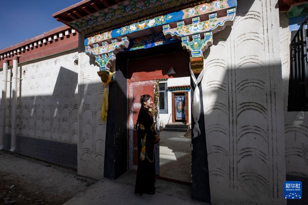 丹增在森布日生態(tài)搬遷安置點(diǎn)的新家門前(1月24日攝)。