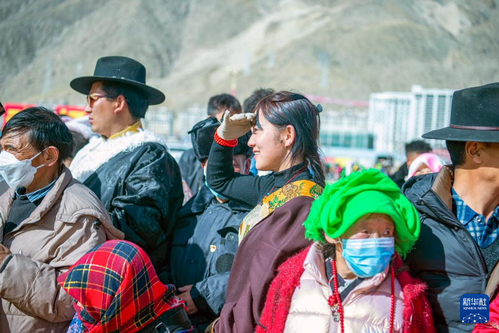 丹增(中)在森布日生態(tài)搬遷安置點(diǎn)觀看賽馬活動(1月24日攝)。