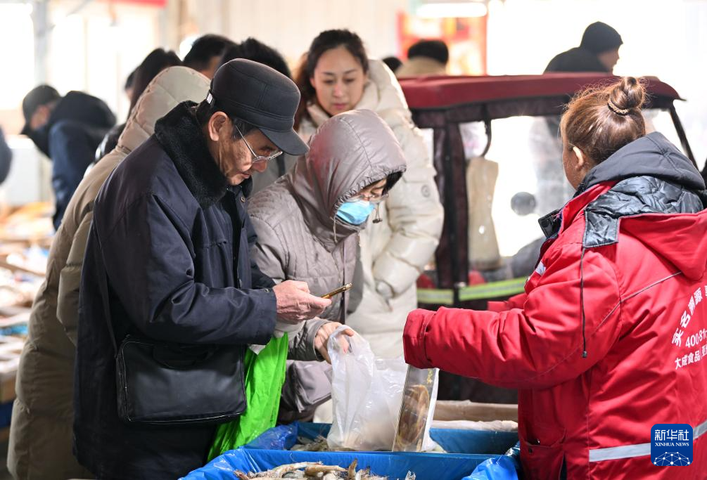 1月28日,顧客在韓家墅海吉星農(nóng)產(chǎn)品批發(fā)市場選購干貨。