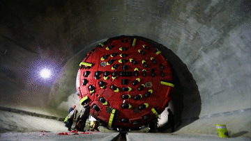 這只“巨無霸鋼鐵穿山甲”身長282米,比10個籃球場的長度還要長,體重2900噸,鑿山開洞的滾刀有58把,開挖直徑8.43米。