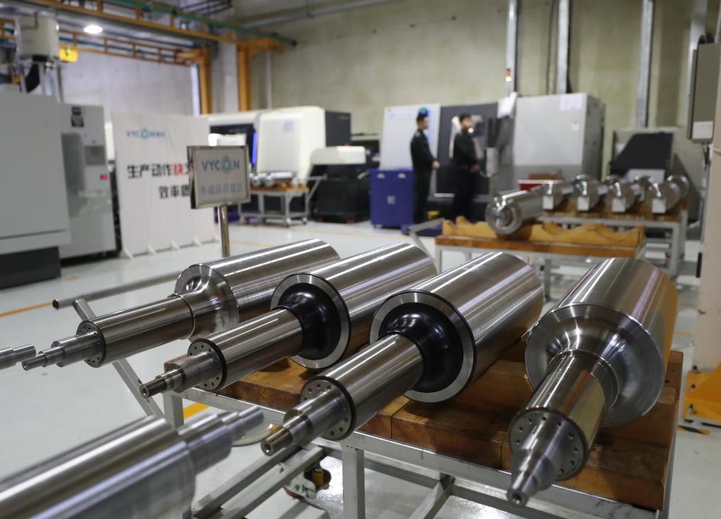 在沈陽微控新能源技術(shù)有限公司車間拍攝的由航天級(jí)合金鋼材制成的轉(zhuǎn)子(2023年11月29日攝)。新華社記者 楊青 攝
