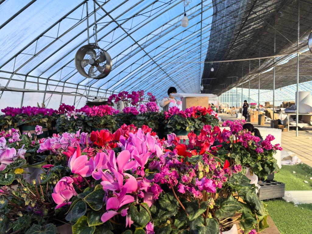 走出居住的小屋,步入寬敞、明亮的溫室大棚,棚內(nèi)密密匝匝地?cái)[放著蝴蝶蘭、仙客來(lái)、小麗花等年宵花。每走幾步,李有昊就要和正在打包、整理花卉的大姐交代幾句,忙得不亦樂(lè)乎。