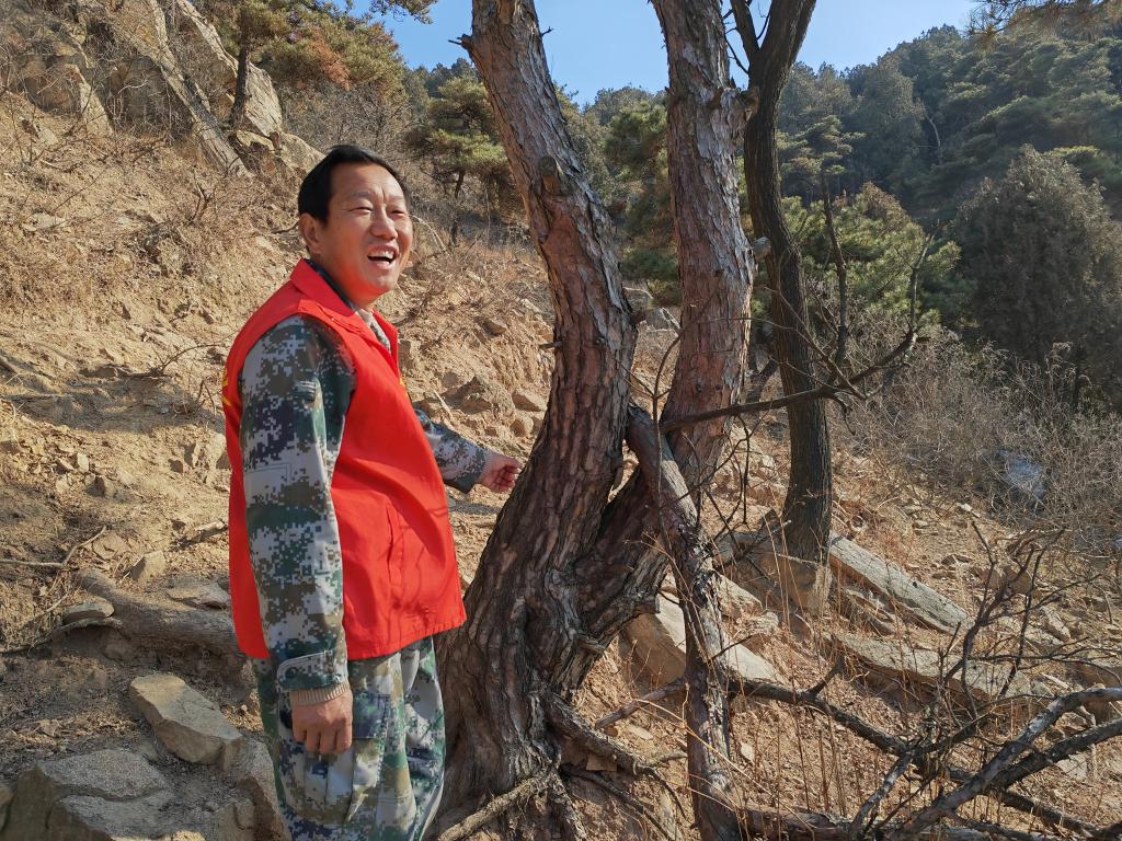 今年58歲的尹作國(guó),負(fù)責(zé)管護(hù)山東臨沂沂南縣國(guó)有林場(chǎng)總場(chǎng)鼻子山林場(chǎng)尚庵寺林區(qū)。位于沂南縣張莊鎮(zhèn)上峪村以北的鼻子山林場(chǎng)占地4000多畝,森林覆蓋率達(dá)到90%,森林防火任務(wù)艱巨。尹作國(guó)和同事在山腳下的防火檢查站輪流值班,定期帶著水壺和干糧巡山。
