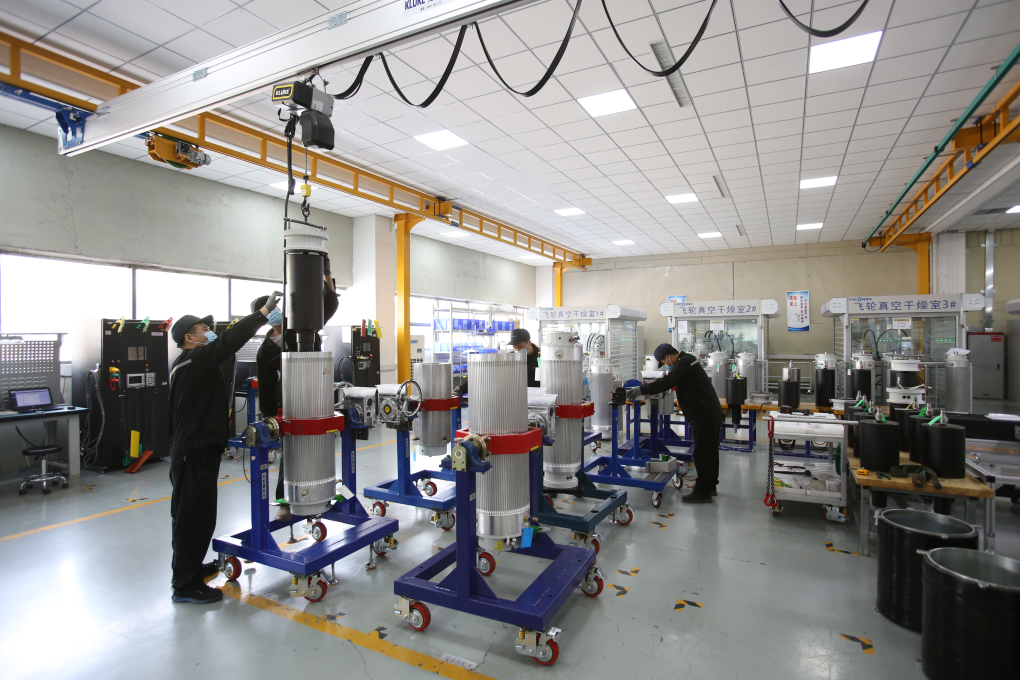 密閉的真空容器內(nèi),由航天級(jí)合金鋼材制成的轉(zhuǎn)子以每分鐘最高4.1萬轉(zhuǎn)的超音速飛馳旋轉(zhuǎn),實(shí)現(xiàn)動(dòng)能與電能的高效轉(zhuǎn)換……得益于這項(xiàng)磁懸浮飛輪儲(chǔ)能技術(shù),大自然忽強(qiáng)忽弱的風(fēng)、明暗不定的光,都能變成穩(wěn)定輸出的“綠電”。