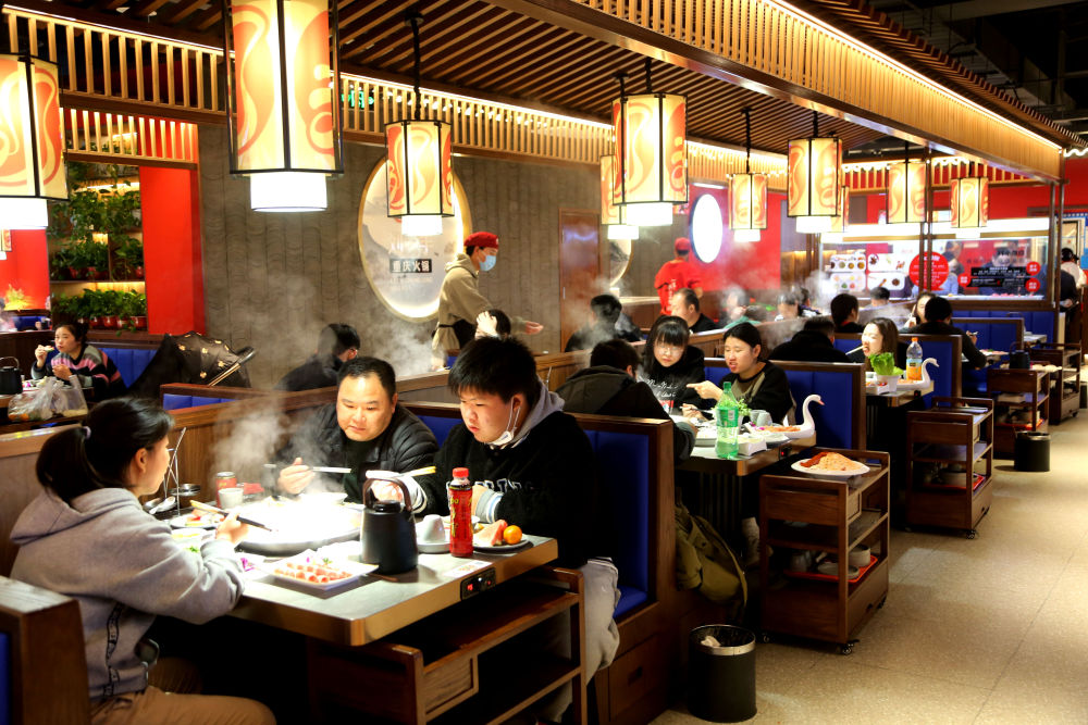 2023年11月26日,市民在江蘇省連云港市連云區(qū)一家火鍋店用餐。新華社發(fā)(王春 攝)