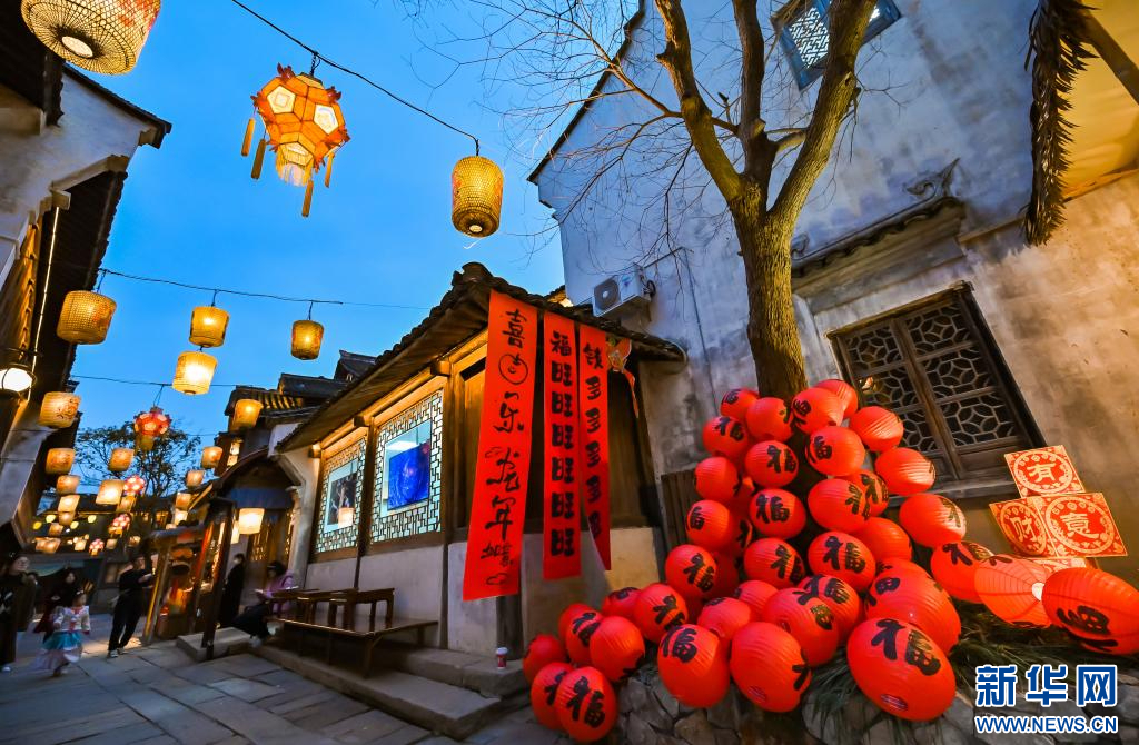 濮院寺灣街呈現(xiàn)出濃濃的新年氛圍。新華網(wǎng)發(fā) 濮院時尚古鎮(zhèn)供圖