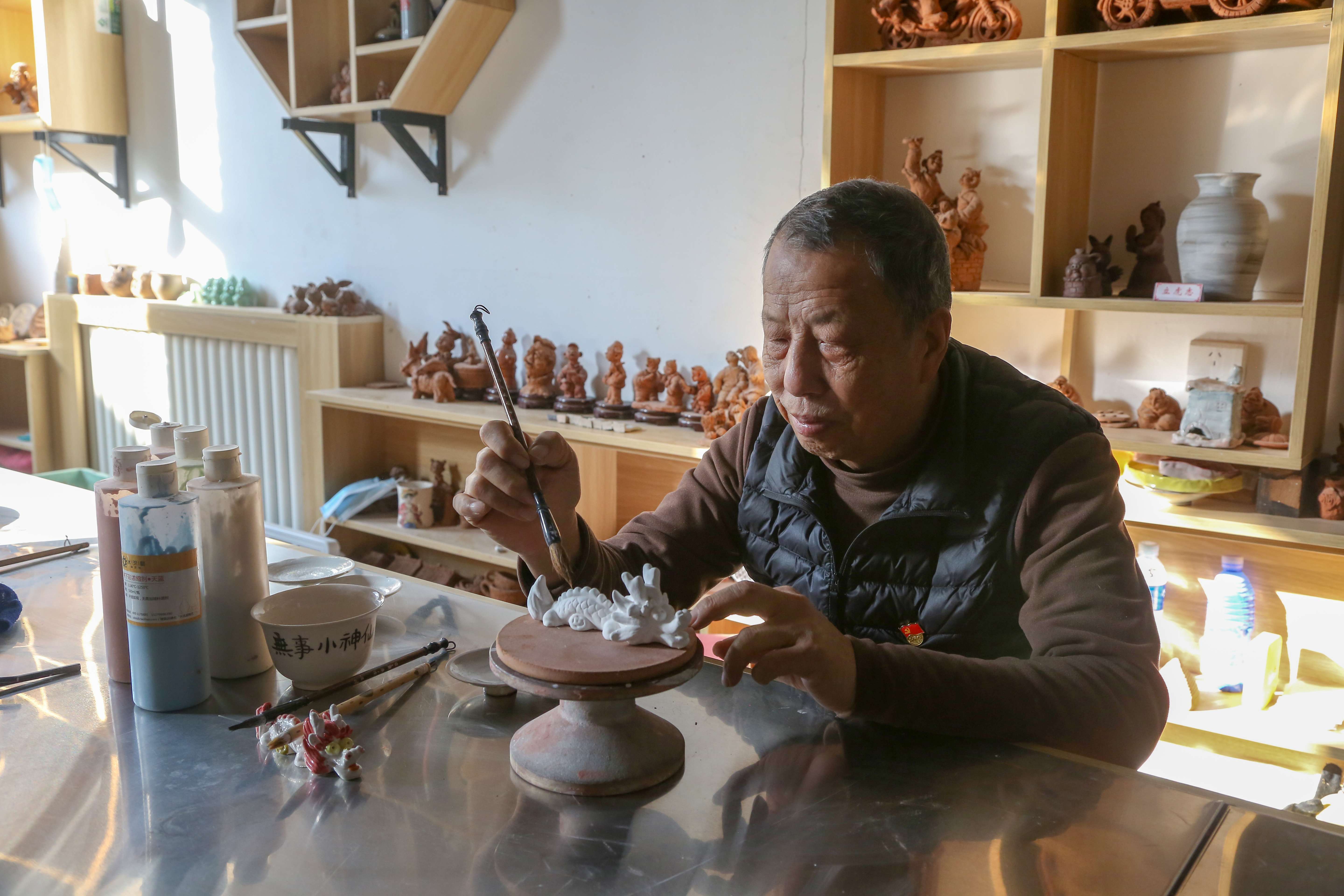 一抔泥土、一把刻刀,經(jīng)巧手捏制、刻畫、修整、彩繪、燒制等多道工序后,一個(gè)個(gè)活靈活現(xiàn)、寓意吉祥的泥塑作品便制作完成了。
