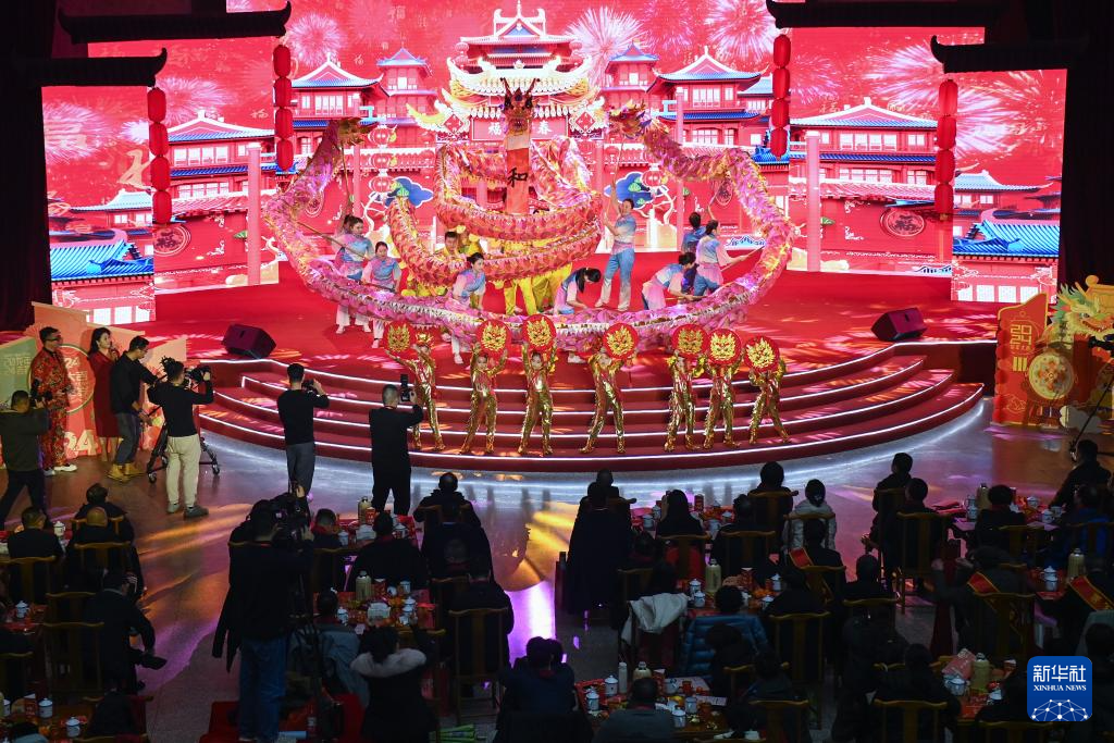 2月4日,來自湖州長(zhǎng)興縣的農(nóng)民進(jìn)行鴛鴦龍表演。