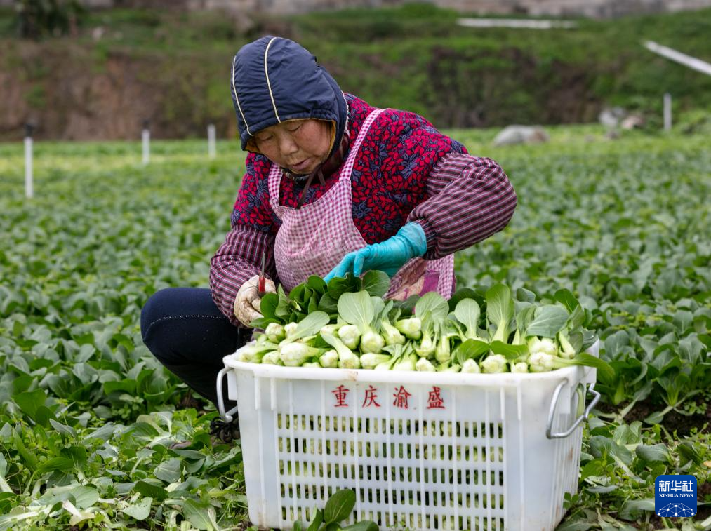 2月6日,在重慶市南川區(qū)南城街道清泉社區(qū)的蔬菜種植基地,菜農(nóng)采摘蔬菜,準(zhǔn)備外銷。