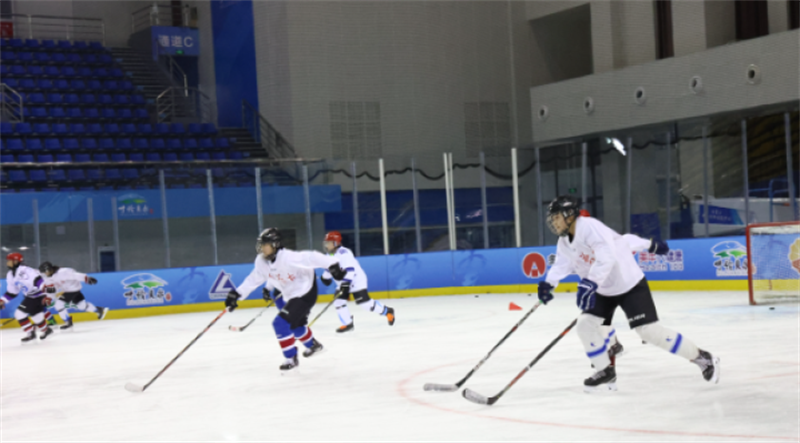 內(nèi)蒙古冰雪運(yùn)動(dòng)學(xué)校女子冰球隊(duì)隊(duì)員正在內(nèi)蒙古自治區(qū)冰上運(yùn)動(dòng)訓(xùn)練中心進(jìn)行備戰(zhàn)訓(xùn)練。李新軍 攝