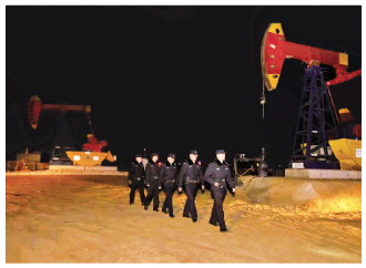 “茫?;臑?,怎么確定巡邏重點(diǎn)?”記者的問(wèn)題很快得到了答案。晚上7點(diǎn)14分,警車停在“孤東66CP1”號(hào)油井旁?!跋襁@口產(chǎn)油純度高、交通四通八達(dá)利于作案后逃竄的油井,容易成為不法分子的作案目標(biāo),轄區(qū)一共十幾口,是步巡重點(diǎn)?!毕萝嚭?,王國(guó)慶帶領(lǐng)民警和勝利油田油區(qū)護(hù)衛(wèi)管理中心仙河油區(qū)護(hù)衛(wèi)部6名巡線員進(jìn)行步行檢查,“步巡不能放過(guò)兩個(gè)細(xì)節(jié),一是看抽油機(jī)四周的泥土有無(wú)體現(xiàn)盜油跡象的車轍,二是看井口有無(wú)盜油接線。”