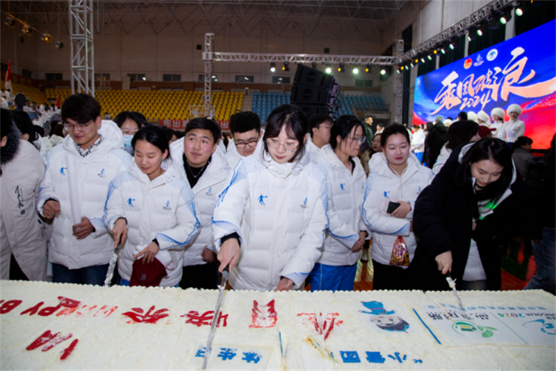 為即將到來的新年和冬運(yùn)增添一份歡樂和喜慶的氛圍,呼倫貝爾學(xué)院精心策劃“迎新春生日會(huì)”活動(dòng)。這種特殊的慶祝方式不僅能讓小雪團(tuán)們感受到冬運(yùn)的激情與活力,也能夠體驗(yàn)到生日會(huì)的溫馨與喜悅?!皩?duì)于大多數(shù)志愿者來說,這是他們第一個(gè)不在家鄉(xiāng)過的春節(jié),雖不能與家人團(tuán)聚,但可以在學(xué)校這個(gè)‘大家庭’度過一個(gè)特殊的‘十四冬’年?!焙魝愗悹枌W(xué)院負(fù)責(zé)老師說。