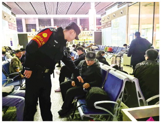 “南站分為到達層、站臺區(qū)、候車區(qū)三大區(qū)域,我們夜間安排6名民警、4名輔警在崗,分區(qū)開展巡邏防控,維護站車秩序。同時,報警臺就設在候車室,安排人員24小時值守。”馬天宇一邊巡邏,一邊向《法治日報》記者介紹說,夜間旅客容易疲憊,往往會放松警惕。對此,該所加大步巡加車巡頻次,不間斷開展巡查,讓旅客隨時見警,報警求助更方便。
