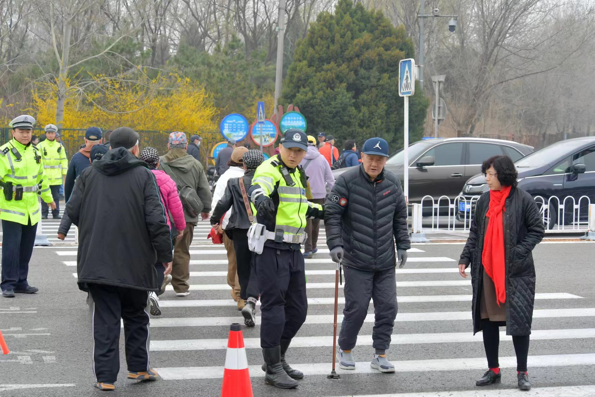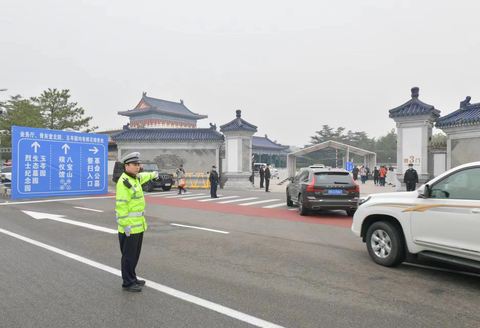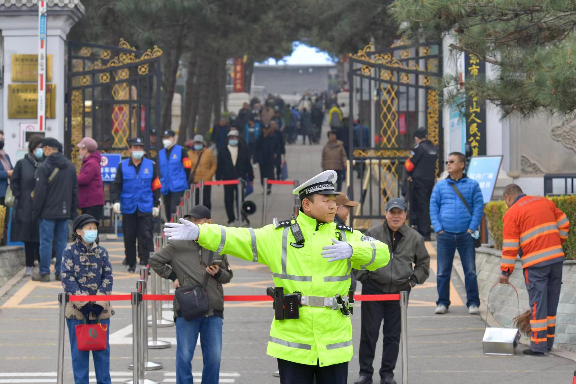 圖為交警在各墓地陵園周邊開展交通疏導(dǎo)。