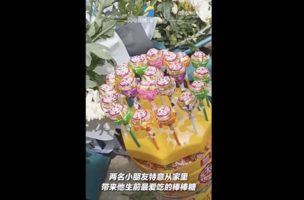 特意從家里帶來兩桶棒棒糖和鮮花